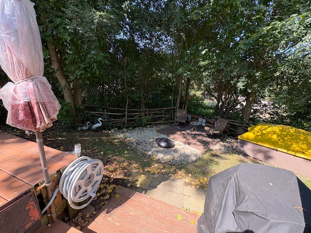 The Large deck has lost of space for a patio table and a well shaded lower area is the perfect spot for the peaceful campfire in the evenings.