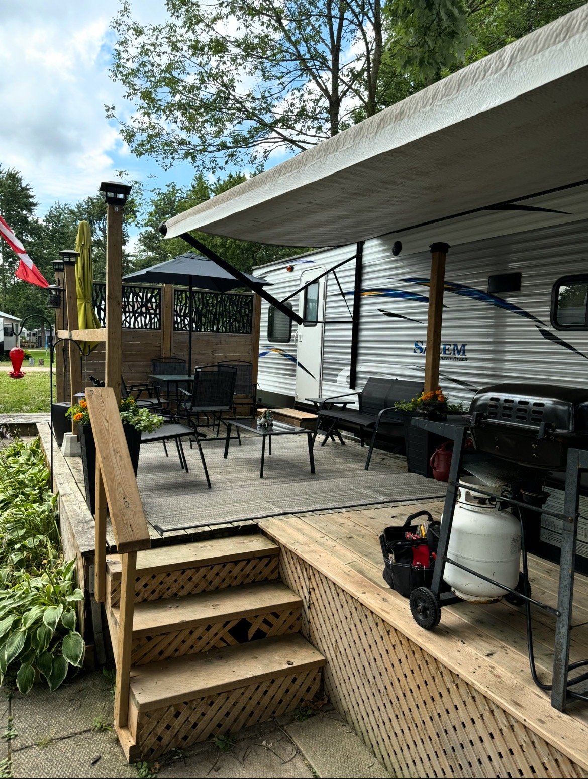 This is a great opportunity to own a turnkey seasonal setup in a family-friendly campground.