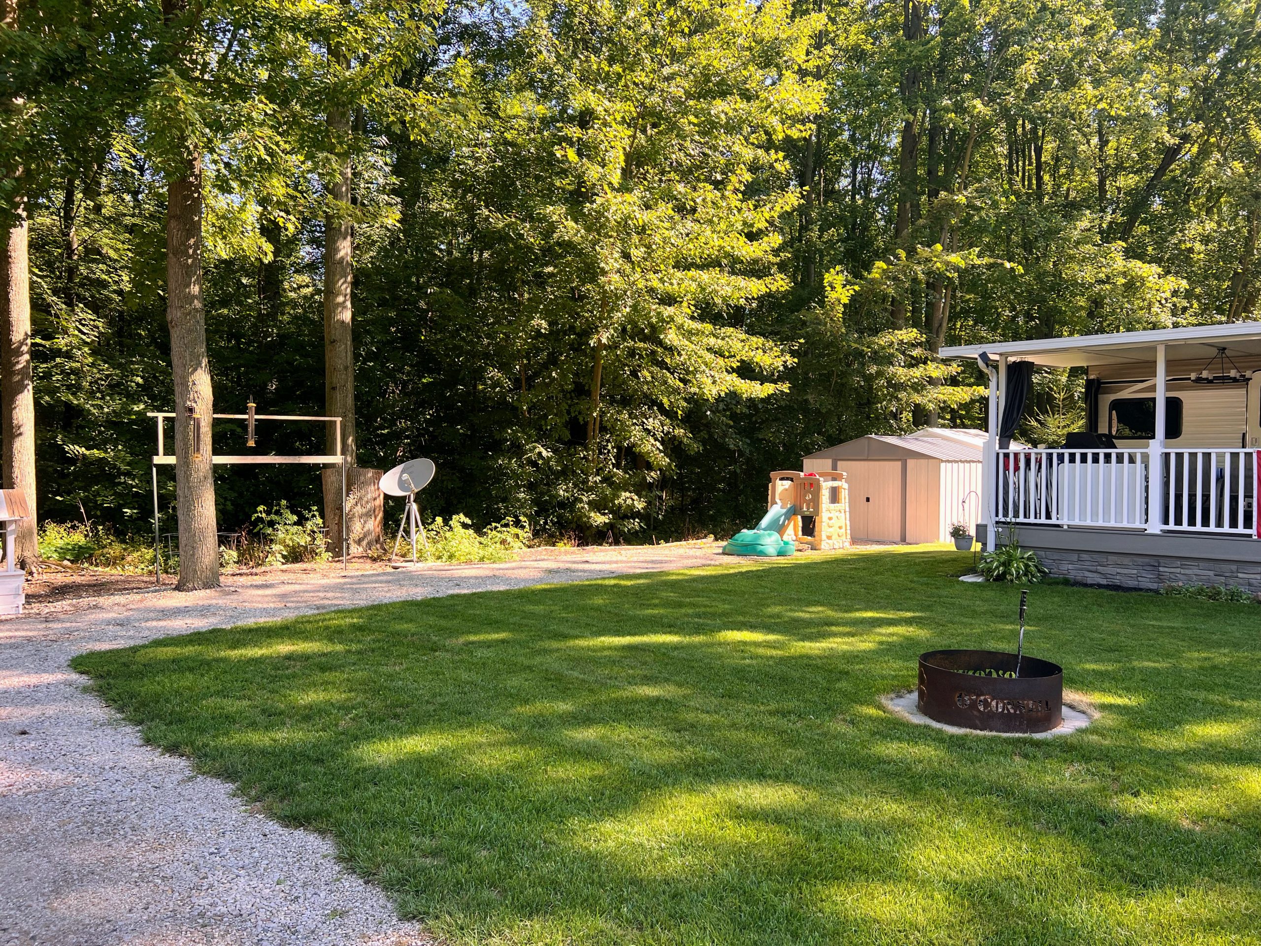 This setup is perfect for seasonal camping. The current site offers a blend of privacy and mature trees, making it one of the most desirable spots in the park.